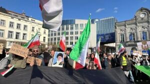 یورپی پارلیمنٹ کے سامنے غزہ و ایران پر اسرائیلی جارحیت کے خلاف بڑا احتجاجی مظاہر