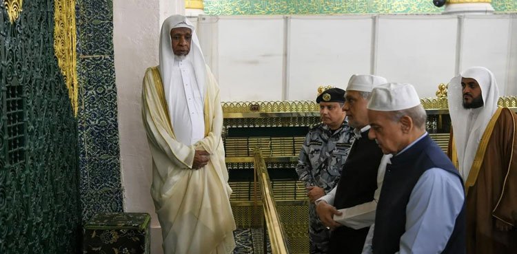 وزیراعظم محمد شہباز شریف نے حالیہ دورہ سعودی عرب کے دوران مدینہ منورہ میں روضہ رسول ﷺ پر حاضری دی۔ انہوں نے ملک و قوم کی ترقی اور معاشی استحکام کے لیے خصوصی دعائیں مانگیں۔ وزیراعظم شہزادہ سلمان بن سلطان بن عبدالعزیز آل سعود کی جانب سے گورنر کی حیثیت سے ان کا استقبال کیا گیا۔ مدینہ پہنچنے کے فوراً بعد وزیراعظم نے مسجد نبوی ﷺ میں حاضری دی، جہاں ان کے لیے روضہ رسول ﷺ کے دروازے خاص طور پر کھولے گئے۔ انہوں نے وہاں درود و سلام پیش کیا اور زیارتِ خاص کا شرف حاصل کیا۔