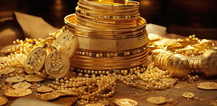 آج 16 اپریل 2026 کو پاکستان میں سونے کی قیمت میں ایک بار پھر بڑا اضافہ ہوا ہے۔ فی تولہ سونے کی قیمت میں 1400 روپے کا اضافہ ہوا جس کے بعد نئی قیمت 5 لاکھ 4 ہزار 862 روپے ہوگئی ہے۔ اسی طرح، دس گرام سونے کی قیمت میں بھی 1200 روپے کا اضافہ ہوا، جس کے نتیجے میں اس کی قیمت 4 لاکھ 32 ہزار 837 روپے تک پہنچ گئی۔ عالمی مارکیٹ میں سونے کی قیمت میں 14 ڈالر کا اضافہ ہوا ہے اور اب فی اونس سونا 4825 ڈالر کا ہوگیا ہے۔ چاندی کی قیمت میں بھی 110 روپے کا اضافہ ہوا جس کے بعد ایک تولہ چاندی 8 ہزار 514 روپے میں فروخت ہو رہی ہے۔ کل بھی بین الاقوامی مارکیٹ میں سونے اور چاندی کی قیمت میں اضافہ ریکارڈ کیا گیا تھا، جب سونے کی قیمت میں 35 ڈالر کا اضافہ ہوا تھا.